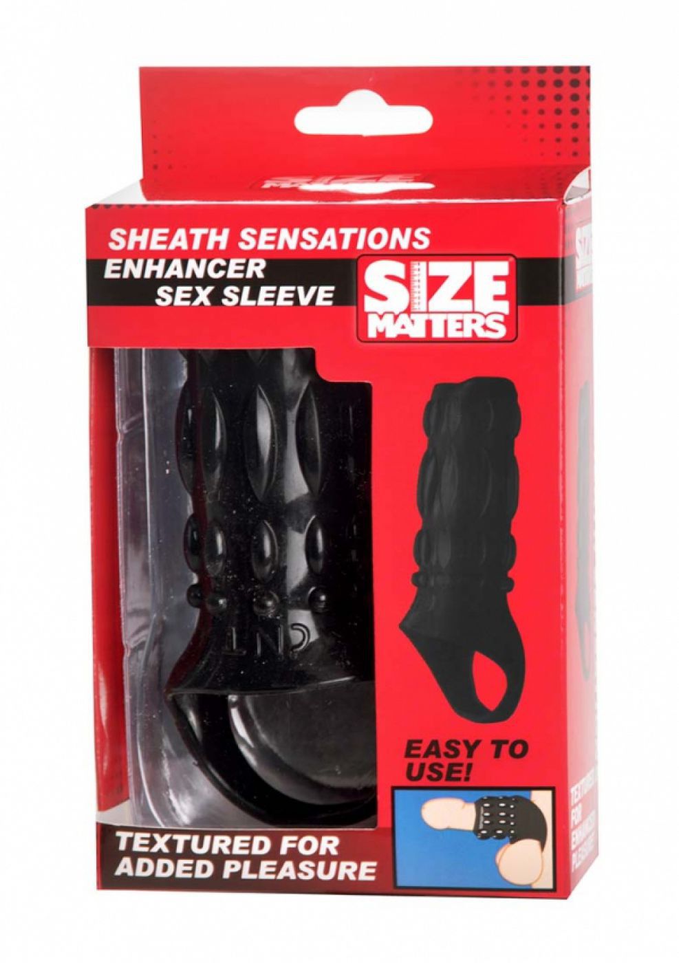 Κάλυμμα πέους με εξογκώματα για ακόμη μεγαλύτερη ευχαρίστηση από τη σειρά της Size Matters. Κατασκευασμένο από μαλακό TPR, το Sheath Sensations Enhancer Sex Sleeve είναι ευκολοφόρετο και ελαστικό, ώστε να μπορεί να τοποθετηθεί ανεξαρτήτου μεγέθους. Αγκαλιάζει σφικτά το πέος και προκαλεί ακόμα μεγαλύτερο ερεθισμό στον/στην σύντροφό σας κατά τη διείσδυση, χάρη στα εξογκώματα που διαθέτει.