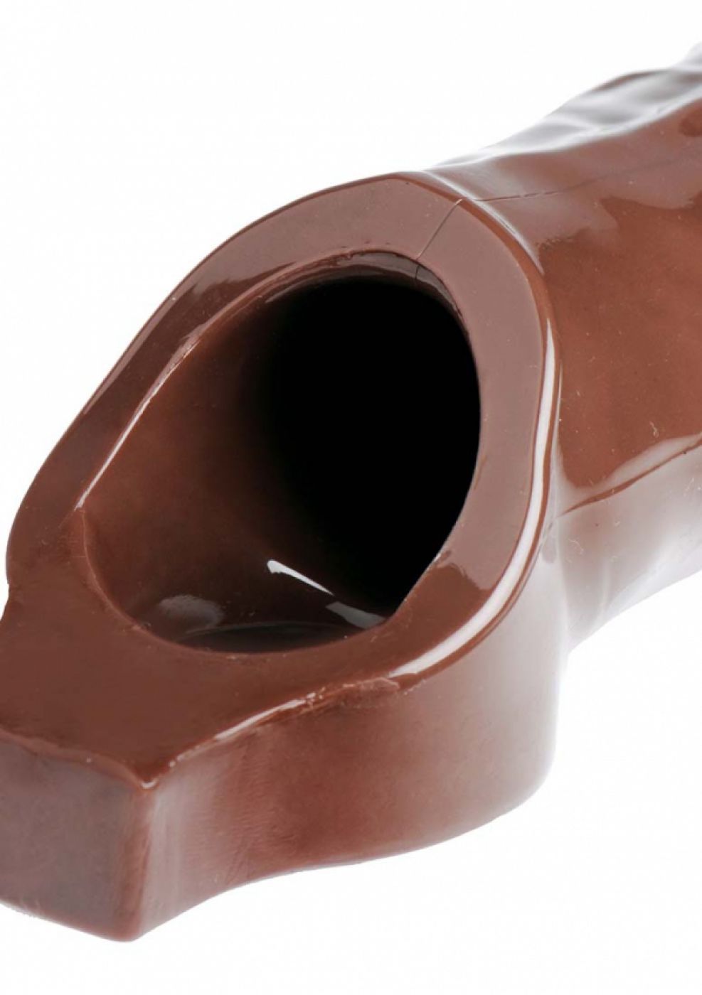 Προέκταση πέους με ρεαλιστική όψη. Φοριέται σαν προφυλακτικό και στηρίζεται άψογα στους όρχεις με τον ενσωματωμένο δακτύλιο. Προσθέτει επιπλέον 5εκ μήκος και έως 1,5εκ διάμετρο. Συνολικό μήκος 21,25εκ. Υλικό: TPR.