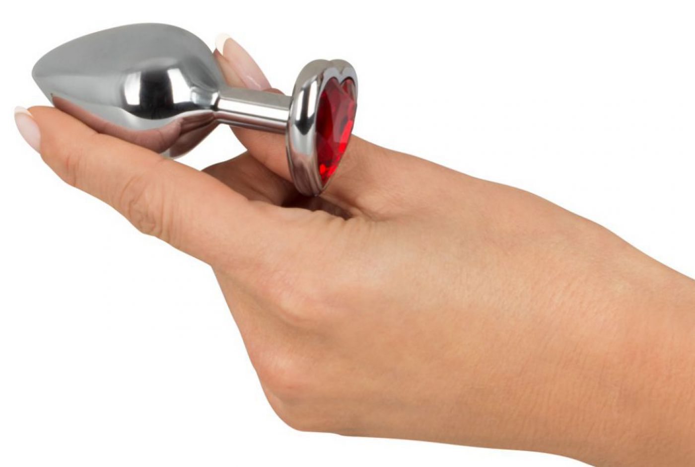 Μεταλλική σφήνα με κόκκινο πετράδι καρδιάς στη βάση της για να ομορφύνει τη θέα από πίσω. Συνολικό μήκος: 8.2εκ, διάμετρος: 3,4εκ. Υλικό: Αλουμίνιο, ακρυλικό.