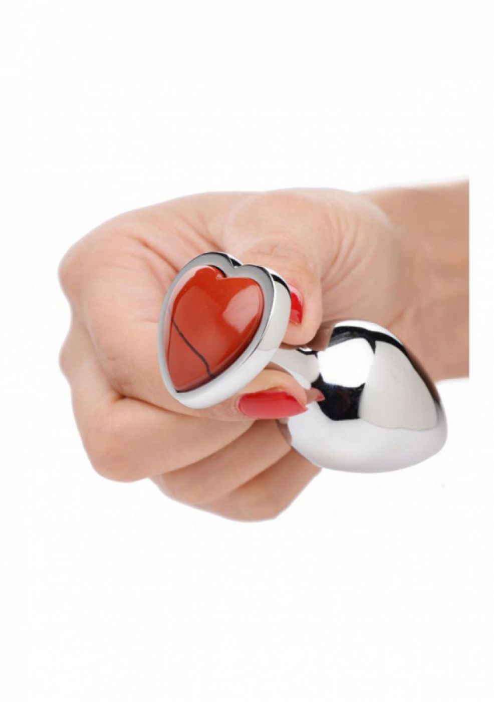Μεταλλική σφήνα με διαμαντένια κόκκινη καρδούλα στη βάση. Κορυφαία πρωκτική απόλαυση με elegance όψη. 3.40 x 8.40 x 3.40 cm
