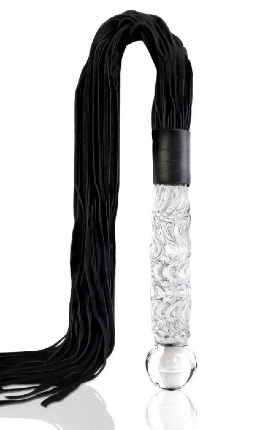 Μαστίγιο με δερμάτινες ουρές μήκους 40εκ, με γυάλινη λαβή και σχεδιασμό για διεγερτική κολπική διείσδυση. Μήκος: 17 εκ, διαμ: 3.2 εκ.